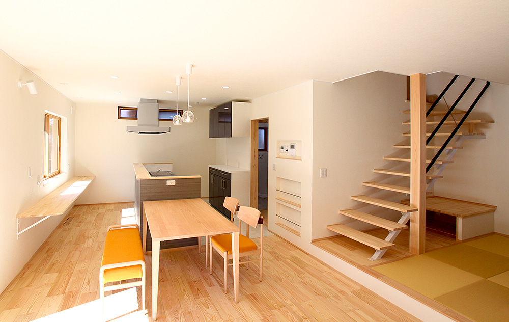 TAKUMIさんのお話を伺ってみると、私達の求めている条件が次々と当てはまり、是非お任せしよう!と一気に家づくりが加速しました。予算は越えられないけどできるならこうしたい、という想いをしっかり汲み取って頂いたおかげでどこをとっても「無駄」のない間取りになりました。家事導線は直線的に、キッチンやWICは周遊できる配置に。おかげで子供たちはぐるぐると追いかけっこを楽しんでいますが(笑)家族みんなが大満足です。古い平屋の建物を取り壊して2階建てをつくることになっていたので、道路からの視線はもちろんですが、元々暮らしてみえるご近所様にとっても不満とならないような建物の配置についてもアドバイスしてもらいました。家の中も大事ですが、ご近所様の印象ひとつで暮らしやすさも変わるだろうと思っていたので心強かったです。建築中はたくさんの業者様に携わって頂きました。皆様優しく、現場はいつもキレイでオープンな雰囲気だったので家が出来上がっていくのを楽しく見守ることができました。そして何より感動したのは、本当に健康な住まいが実現したことです。冬の暖房は床下に設置したエアコン1台。家中がじんわりとあたたかく冬でも素足が気持ち良いのです。1日中エアコン稼働するなんて「電気代、大丈夫?」と思いましたが光熱費は以前の暮らしよりむしろ安くなりました。我が家は空気洗浄機も加湿器も置いていないのですが、湿度50%台をキープしており、ホコリアレルギーや冬の乾燥でひどかった子供たちの咳も激減!まさに心も体も健康です。結露もなくて、断熱性能や気密性の高さを実感しています。